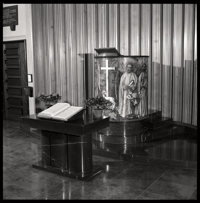 Collection photographique IHM-MHL ➔ Chapelle de l'hôpital cantonal attenante à l'institut d'anatomie pathologique: intérieur, l'autel.