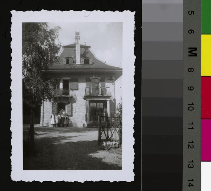Maison Correvon: les pensionnaires posant (au jardin, au balcon, sur le perron).
