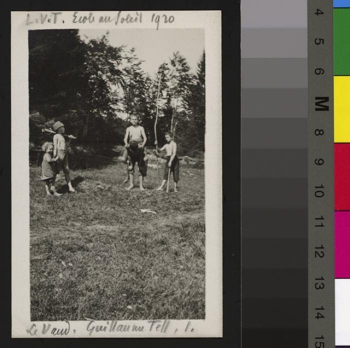 Collection photographique IHM-MHL ➔ Le Vaud: enfants suivant l'école en plein air jouant à Guillaume Tell.