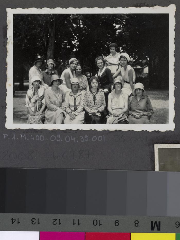 Collection photographique IHM-MHL ➔ La Clairière, préventorium pour jeunes filles: pensionnaires posant.