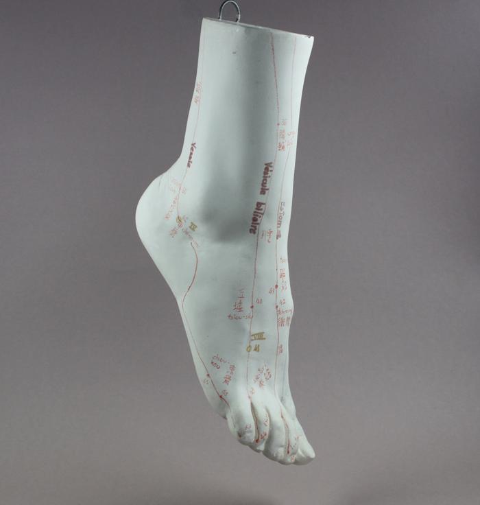 Pied de plâtre avec illustrations des points d’acupuncture.