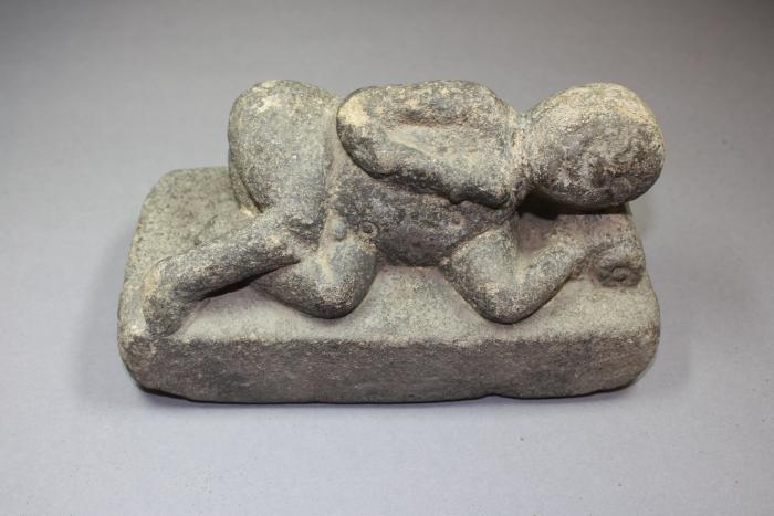 Statue représentant une femme couchée permettant à la patiente de pointer les parties douloureuses ou malade sans être auscultée par le médecin. Elle repose sur un matelas et sa tête est posée sur un coussin cylindrique.