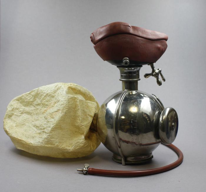 Appareil d'anesthésie mis au point par Louis Ombrédanne (1871-1956) en 1907 et utilisé jusque dans les années 1930. Il permet de contrôler la quantité d'anesthésiant dans l'air que respire le patient grâce à la mollette graduée de 0 à 8. Ce système a été conçu afin d'éviter les surdosages parfois mortels.