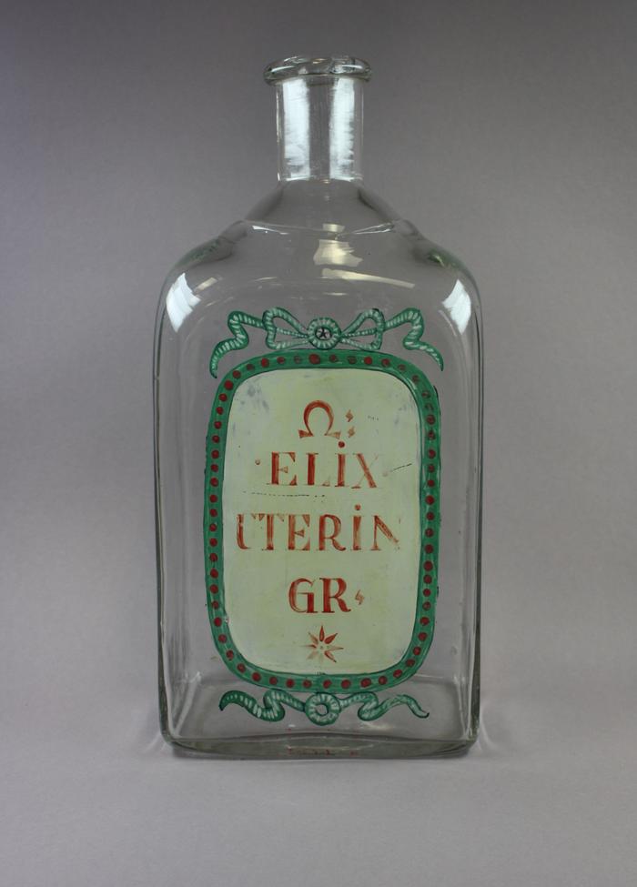 Flacon en verre avec inscription: Elix. Uterin Gr.